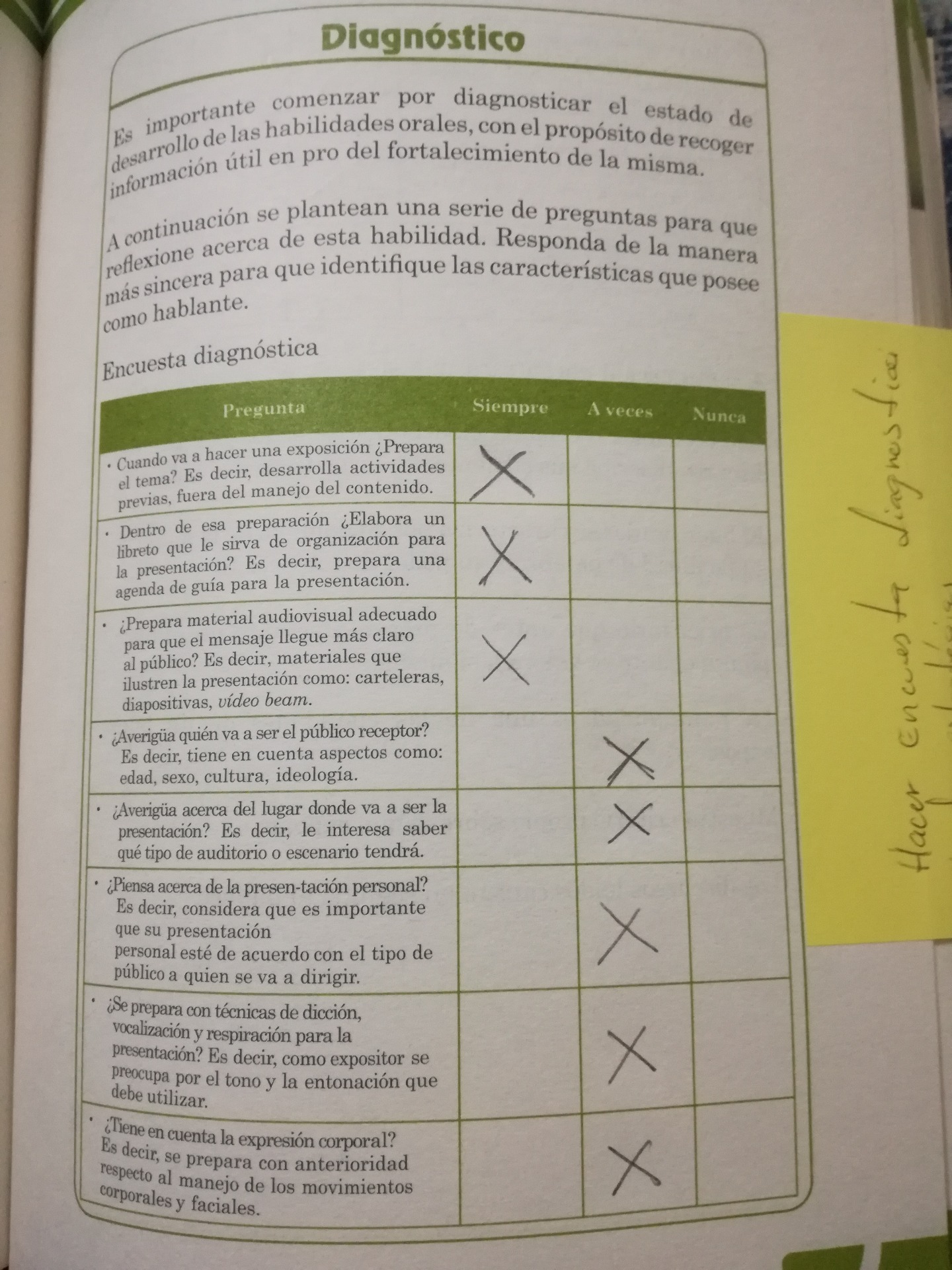 Luego de realizar la encuesta diagnostica del libro construcción del discurso de (Gloria María Sierra Villamil y Norma Sofía Vanegas Torres registro el siguiente plan de estrategias para mejorar mis habilidades orales: