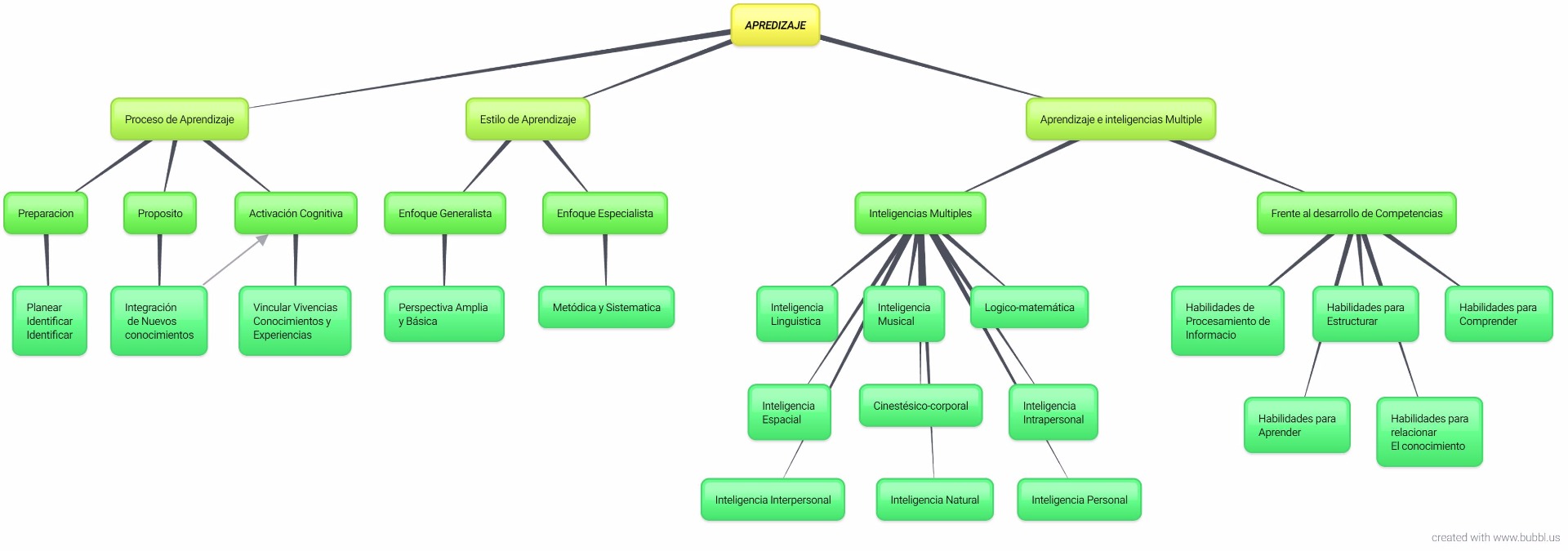 El aprendizaje cuando es aplicado con todos sus procesos y desarrollos llegamos a encontrar un concepto muy importante el cual da a conocer el juicio crítico la reflexión y la comprensión adecuada de cada individuo para su producción de ideas y pensamiento activos, este concepto es ¨Inteligencias Múltiples¨ las cuales contienen diferentes tipos como lo son: